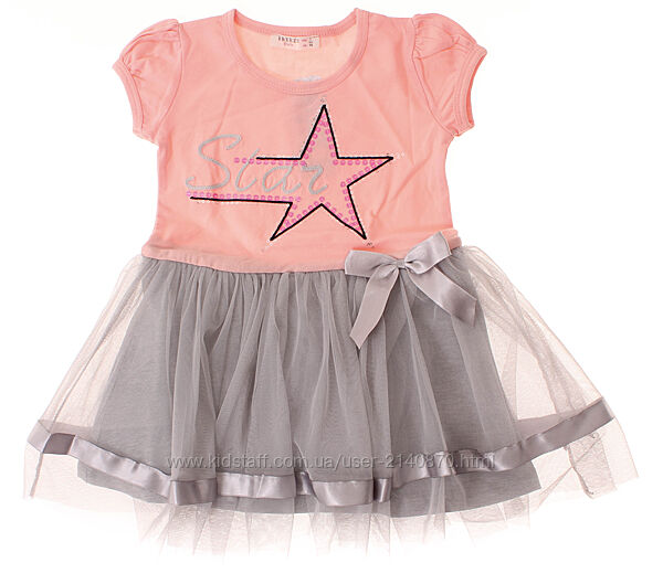 Код: 918784-14116, святкова сукня для дівчинки персиково-сіра, Breeze Туреччина, р. 98 (2-3), 104 (3-4), 110 (4-5), 116 (5-6), 128 (7-8), склад: 95% бавовна, 5% еластан