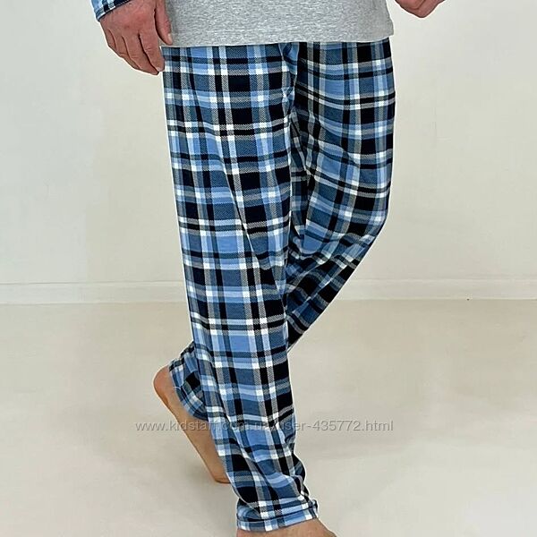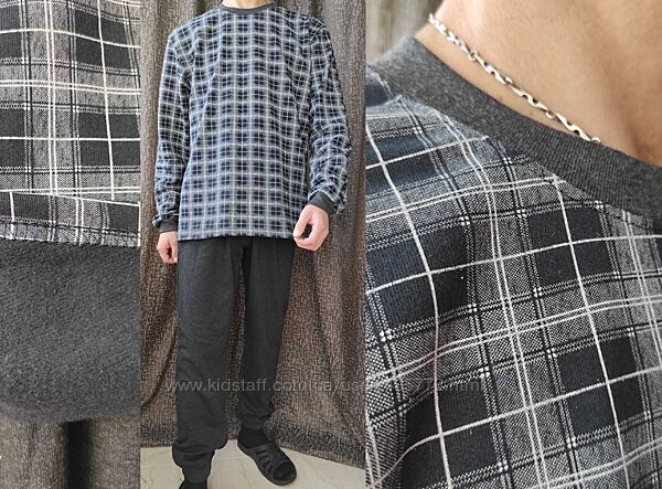 фото 4 Піжама чоловіча стильна, красива та практична. Можна використовувати як для сну так і як домашній костюм. Тканина футер начос (байка, бавовна). Тканина якісна, натуральна та приємна до тіла, добре поглинає вологу. Горловина на кофті оброблена широкою стрейчивою бейкою. Штани вільного крою, прямі, на зручній посадці.