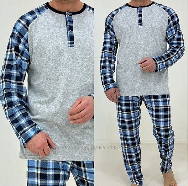 фото 2,3 Чоловіча піжама начос (байка) матеріал виробу бавовна - трикотаж з начосом. Горловина , рукав та низ халош на якісному стречевому манжеті. Стильне поєднання кольорів прийдеться до смаку будь - якому чоловіку та подарує тепло й гарний настрій)). Модель дуже повномірнаЦіна та розмір: 48,50,52,54 - 610 грн