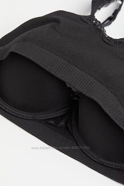 Бюстгальтер пуш-ап из ребристого трикотажа с практически бесшовной конструкцией для комфорта. Имеет регулируемые бретели и кружевную отделку сверху и на бретелях. Мягкие чашки на косточках визуально увеличивают грудь и создают красивое декольте. Без замка.Размер 80-А, маломерка в объеме, больше на 75