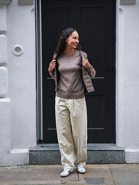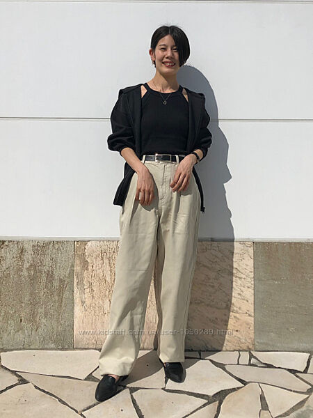 1-4 Uniqlo джинси, оригінал з бірками, модель однакова, колір білі 28 88 відсотків котон, стрейчеві, тягнуться дуже добре, еластичні, тримають форму. Довжина залежить від зросту (на фото моделей це добре видно). Виготовлений із зручного еластичного деніму. - Тканина забезпечує комфорт і класичний вигляд деніму. - Ледь, незначно розширений крій від коліна до низу. - 5 кишеньковий дизайн. Дод. фото за запитом. 5-8 Uniqlo брюки джинси, дизайнерські, нові, 27 розмір. - Переосмислені класичні джинсові штани. - Зі складками та кишенями з обох сторін для більшої елегантності в повсякденному житті. - Крій із завищеною талією, підкресленою талією та широкими прямими штанинами. - Можна поєднувати як повсякденно, так і елегантно. - 100% бавовна для природного, приємного відчуття. - Широкий крій для сучасного образу.