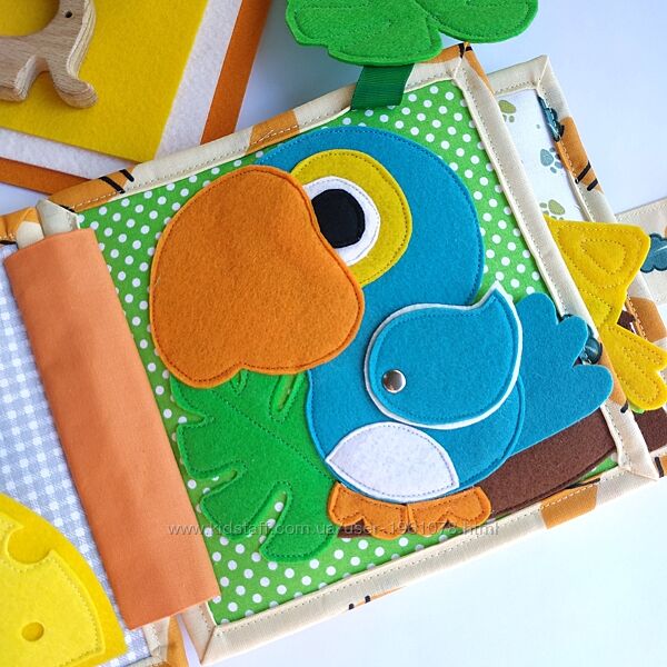 Дітям від 6-ти місяців буде цікаво, адже кожна сторінка зроблена на розвиток дрібної моторики, хапальних навичок, уваги.