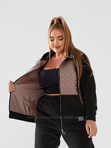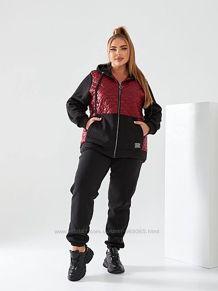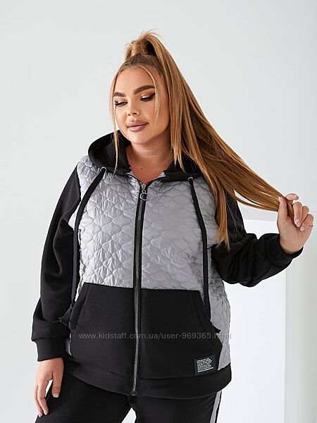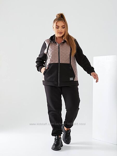Стильний теплий костюм підійде на сезон осінь - зима, комбінована кофта на змійці із зручними кишенями кенгуру, зручний глибокий капюшон.