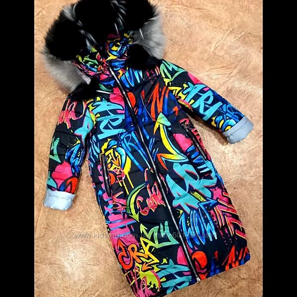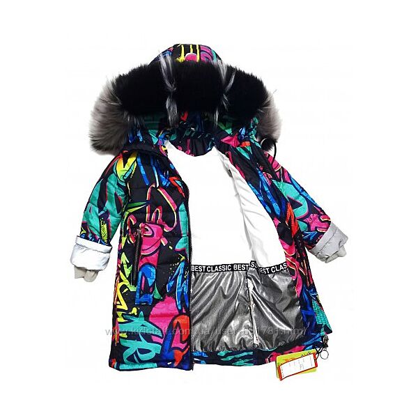 світловідбиваючі елементи, при потраплянні світла відбивають його і стають видимими навіть в дуже сильній темряві, це зараз дуже актуально і безпечно, так як вашу дитини буде видно здалеку. Щільний силіконезований синтепон (250г/м2) добре тримає тепло і не дасть замерзнути навіть при стоянні на місці. Також чудово тримає тепло при сильному вітрі, цьому допомагає внутрішня захисна планка. По всій довжині флісова і термо підкладка. В рукавах є трикотажні манжети. Хутро штучне, високої якості, пристібається до пальто на замку, при бажанні можна легко зняти. Крій чудово сидить по фігурі.