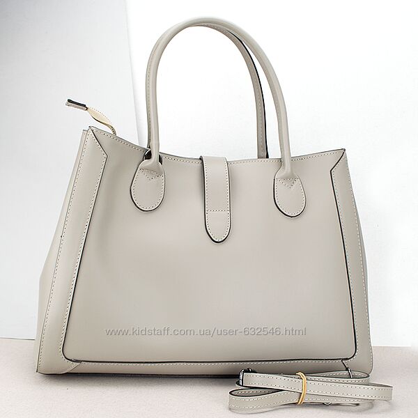 Ця сумка виготовлена із високоякісної натуральної шкіри, вона гарантує надійність та довговічність. Зручні дві шкіряні ручки і одна довга регульована, що знімається, надають вам варіативності в носінні. Сумку прикрашає декоративна застібка-карабін.