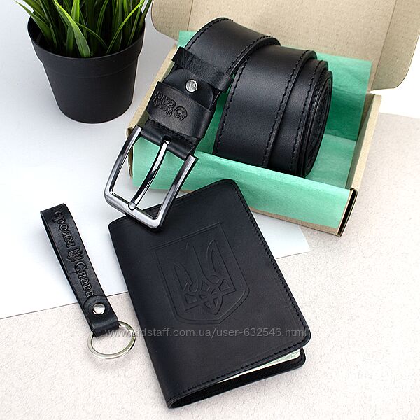 Подробное описание: Подарунковий чоловічий набір ремінь обкладинка на паспорт брелок