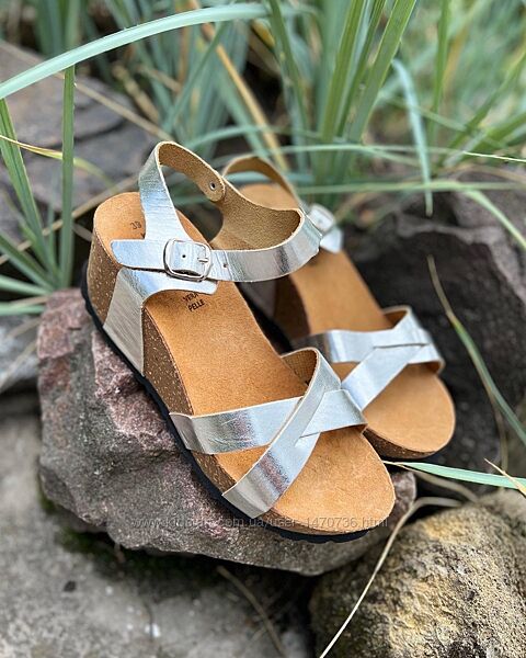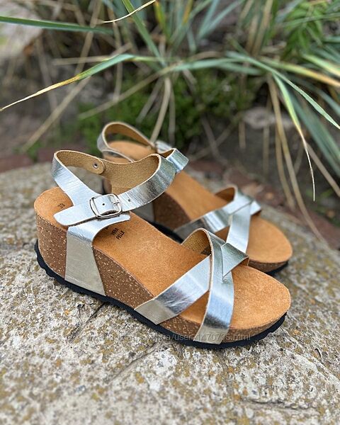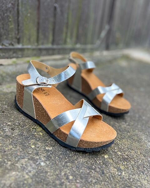 📎BELLINI. Італія. ОригіналГарненькі надзвичайно комфортні невагомі босоніжки з натуральної шкіри на корковій танкетці