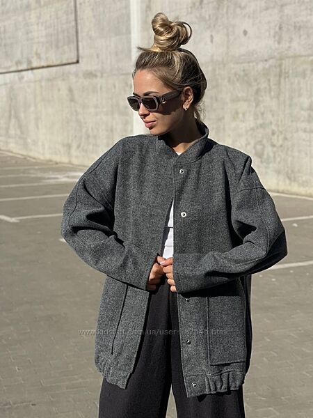 Бомбер oversize. Застібається на кнопки. По низу манжет на резинці.