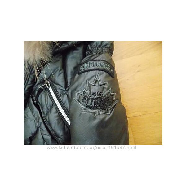 Фирменная Стильная Куртка-Пуховик Extreme р-р 6\7 (116-128) лет.С натуральным мехом.цена-1050грн б\у в отличном состоянии.(пух не сбитый,опушка пышная и красивая).Очень теплый!!! Одевали под лыжные штаны.Мех съемный.Рукова и талия с плотными довязами.Возле горлышка отличный мягкий велюровый ворот. Отличная и качественная фурнитура внутри и с наружи.Непромокаемая ткань. Состав;70% Down. 30% Feather. Температура стирки при 30 градусах. Повторюсь, Очень теплый и стильный!!! Куплен в Германии. Замеры;Длина-45см,полуобхват-41см,рукав от плеча-45см+3см вылазит довяз (+плечо-9см)