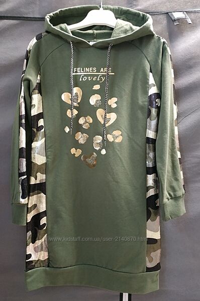 Стильна туніка - худі (толстовка) для дівчинки з капюшоном, колір: хакі (зелений), утеплювач: начос, Bushra (Туреччина), зріст: 128 (7-8), 134 (8-9), 140 (9-10); склад; 95% бавовна, 5% еластан