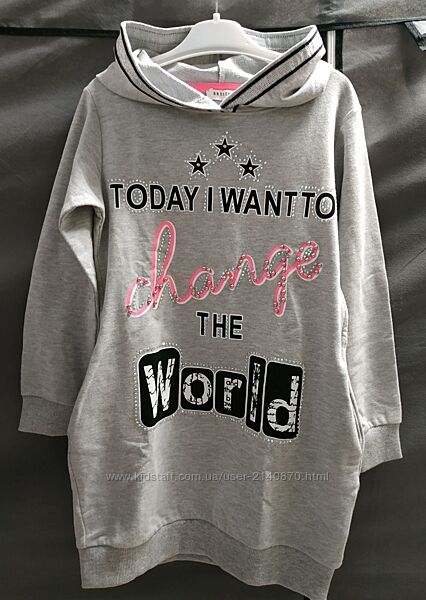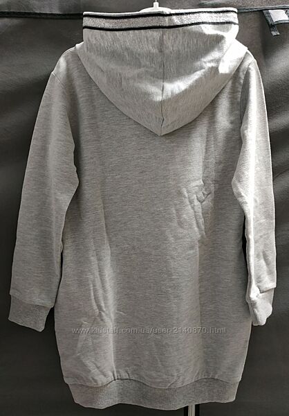Стильна натуральна худі -туніка - сукня для дівчинки з кишенями та капюшоном; колір: сірий; виробник: Breeze (Туреччина), зріст: 128 (7-8); склад: 95% бавовна, 5% еластан;