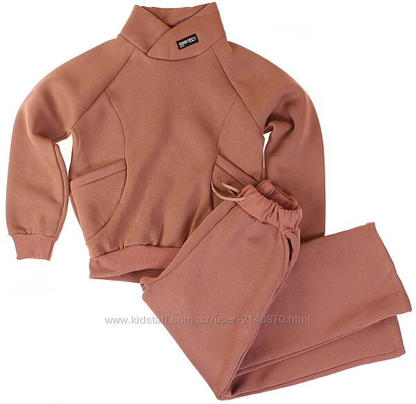 Модний, стильний, трикотажний костюм для дівчинки: світшот (кофта) зі спущеним довгим рукавом вільного крою та широкі штани; утеплювач: фліс (начос); склад: 100% бавовна; виробник: Nice thing (Туреччина):