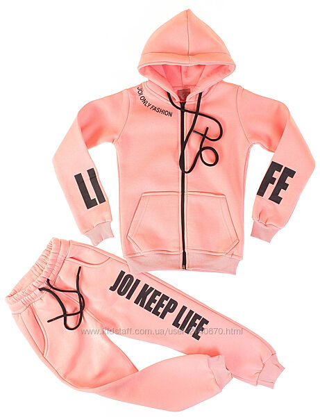 Теплий зимовий спортивний костюм на блискавці для дівчинки персиковий: худі (кофта) з довгим рукавом і капюшоном + штани, утеплювач: фліс (начос), Joi (Туреччина), склад: 65% бавовни, 35% поліестер; код: 947336-Н-308-438/75; р.158 (13), 164 (14), 176 (16)