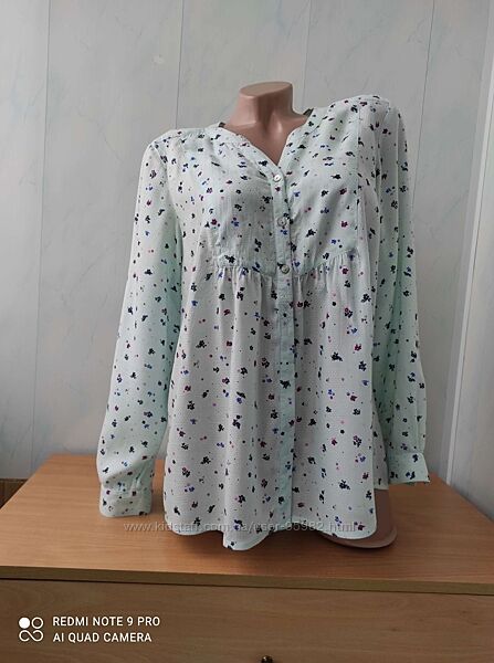Ніжна блуза в квіточку bonmarche пог - 55, поб - 61, довжина рукава - 58, є лацкан, плечі - 40, можна підкачувати, довжина по середині спинки -64. Ніжна, дуже красива, легка, носиться не в обтяжку, віскоза під