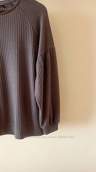 Круглый вырез горловины, плечи регланом. Стильные рукава-фонарики. Эластичные манжеты и подол.