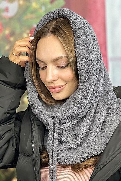 Фасон - капюшон с завязкамиМатериал - пряжа с хлопком