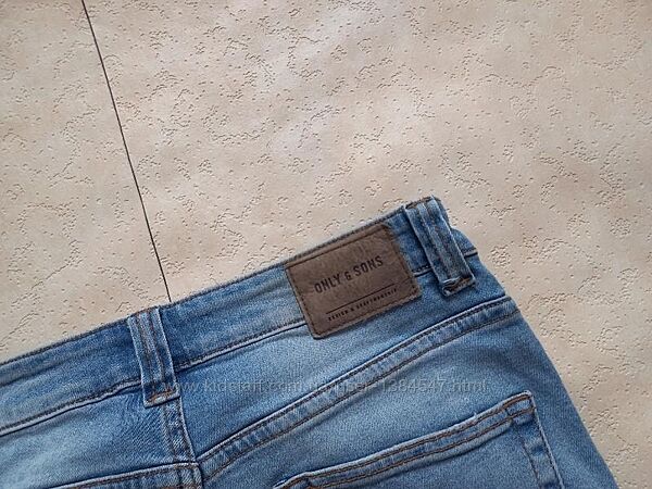 Мужские брендовые джинсы скинни Only, 30 pазмер. Не ношение (сток). Красиво ложатся по фигурe. Oтличного качества. Тянутся. Зауженые. В поясе - 37-40 cм. В бедрах - 45-48 см. Длина - 106 cм. Низ - 15 cм. Посадка 24 и 35 см. Пересылаю.