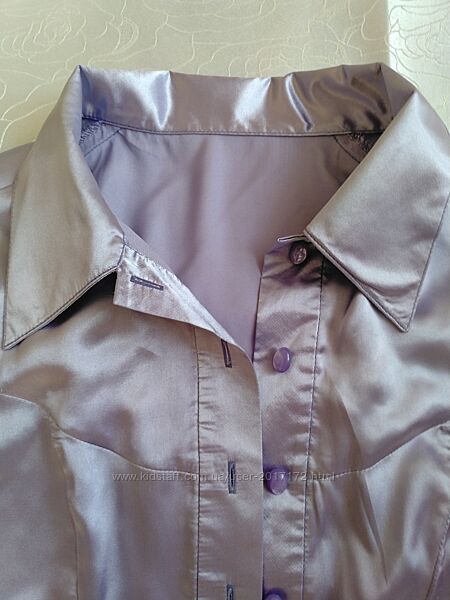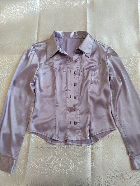 красивая женская атласная блузка з длинным рукавом нежного сереневого цвета.Размер 40-42 (S), длина по спинке - 52 см, длина рукава - 58 см, ширина по груди - 41 см, ширина плеча - 11,5 см, ширина в талии - 36 см.