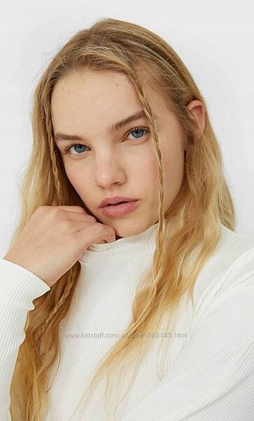 Подробное описание: Жіноча кофтинка гольф в рубчик білий Stradivarius