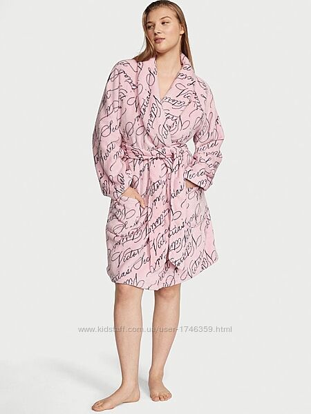 Плюшевий Халат Victoria´s Secret Black Logo Short Cozy Robe.- наявність двох містких кишень спереду;