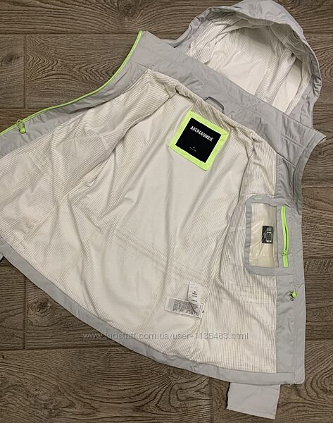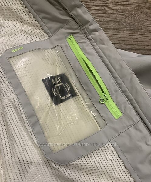 Вітровка/куртка Abercrombie&Fitch р. М/38/10.Гарний сірий колір з салатовими вставками (світловідбиваючі), спереду та , по боках кишені, також є внутрішня кишеня для телефону. Всі кишені застібаються на блискавку.
