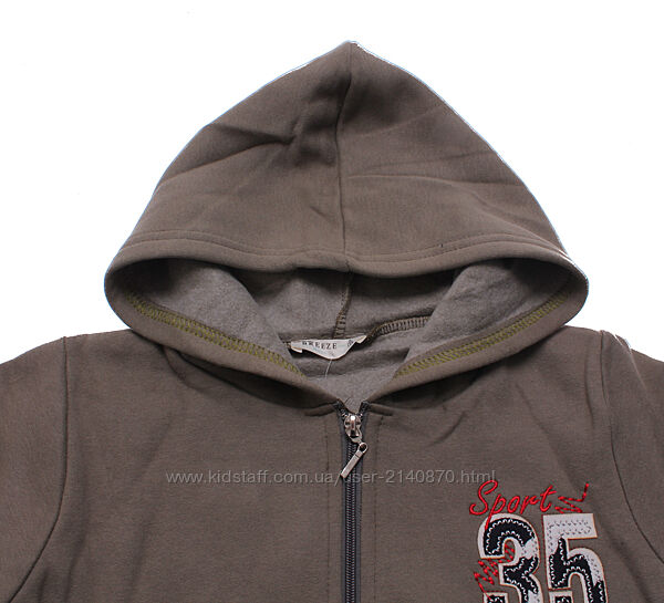 Код: 12209-15750; у теплена натуральна якісна кофта спортивна для хлопчика з капюшоном на блискавці і з довгим рукавом; колір: хакі; виробник: Breeze (Туреччина); р. 134 (9 років), 140 (10 років), 146 (11 років), 152 (12 років)