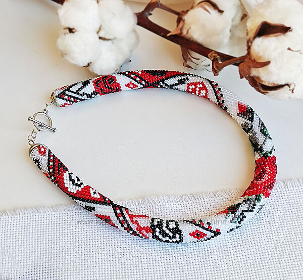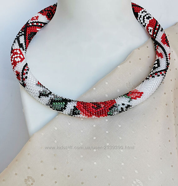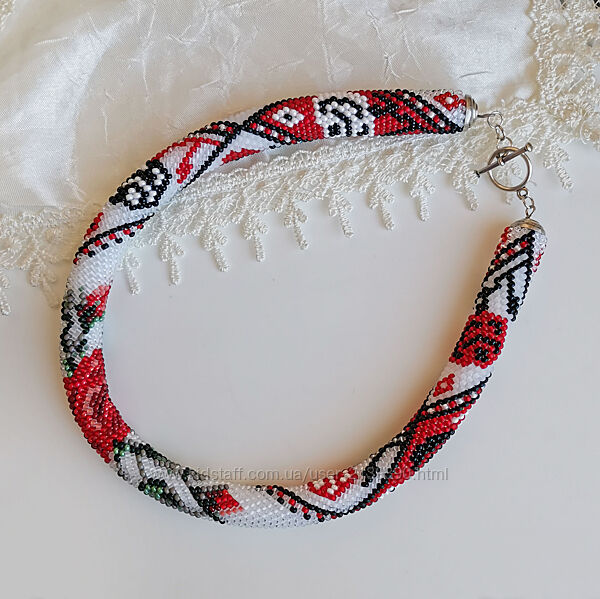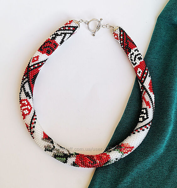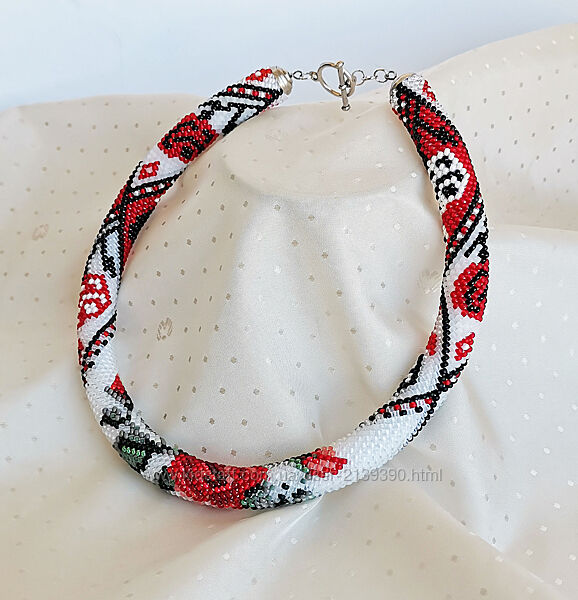 Джгут, зв´язаний із чеського бісеру в стилі «вишиванка». Традиційний і вишуканий візерунок прикрасить Ваш образ, створюючи гармонійне поєднання минулого і сьогодення. Троянди - символ кохання, життєвої енергії та жіночності, який захистить і принесе удачу. Ця прикраса не тільки підкреслить вашу унікальність, а й стане потужним талісманом. Оберіг, стиль, гармонія - носіть із задоволенням! Довжина із застібкою ок.42см, можливо продовжити ланцюжком Обміну та поверненню не підлягає. (Інші мої роботи в instagram. Посилання надаю при зверненні).Другие объявления продавца