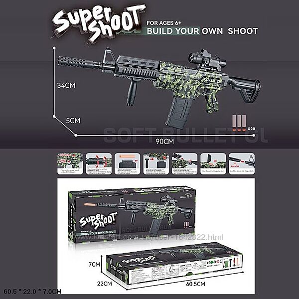 Ребенок сможет использовать детское оружие для активных игр в компании, а также играть и сам, тренируясь в стрельбе по мишени.