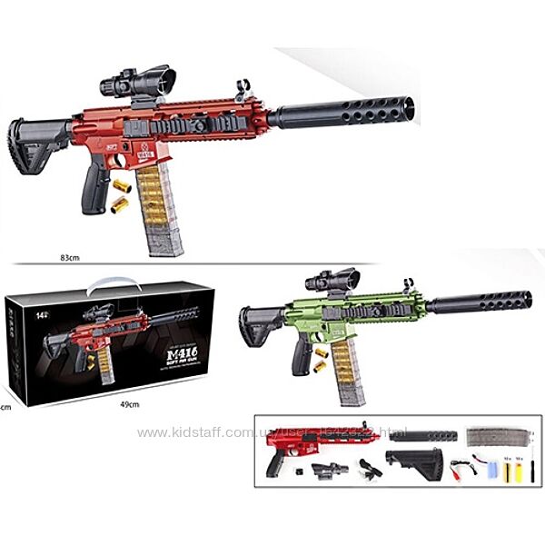 Детский Автомат M416 88см 2 цвета красный и зеленый, на аккумуляторе, оптический прицел, глушитель, гильзы, мягкие патроны, USB-зарядка, в коробке 49х22х13 смДругие объявления продавца