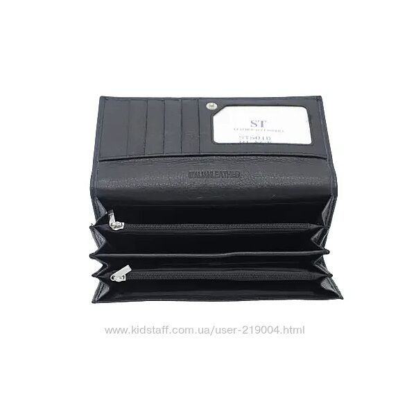 Жіночий шкіряний гаманець ST. Великий класичний гаманець ST. Всередині 4 відділи для банкнот, дві кишені на блискавках, велика відкрита кишеня і 9 кишень для карт і візиток (одна з них прозора). Ззовні на зворотній стороні кишеня на блискавиці. Розмір (см) 18,5*9*3,0. Постачається в коробці.В наявності великий асортимент гаманців!