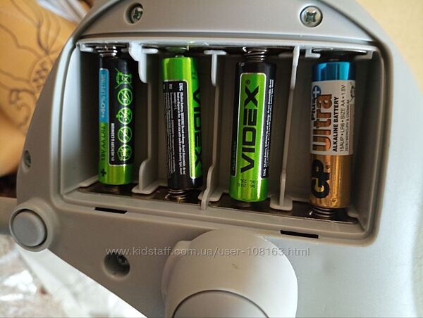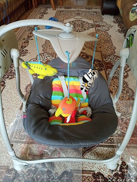 Дуже мало користувались, оскільки малий був більше на руках. Дуже гарний стан. Все працює - качає, музика, таймер. В ідеалі від великих батарейок, аде пальчикові аккумулятори теж тягнуть прекрасно.