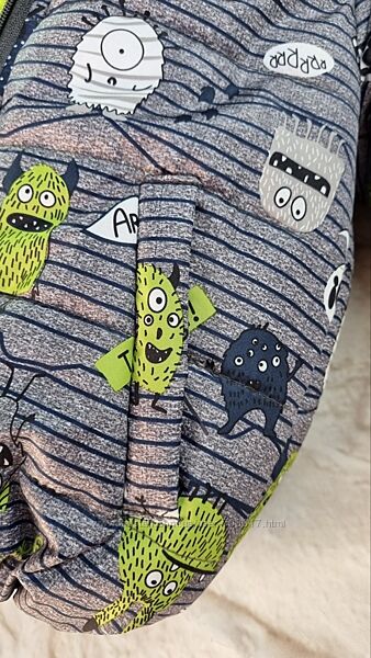 - впереди капюшон можно дополнительно застегнуть на липучки, чтобы защитить горлышко ребенка от ветра.