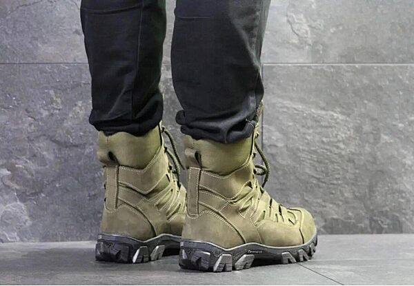 Берці берци зима хакі, оливка зелені на хутрі з посиленим носком і пятою.Розмірний ряд 40-46. Поверхня взуття виготовлена з високоякісної міцної шкіри crazy horse і вставок кордури (має вологостійкі властивості) -шви виготовлені надійним способом, проходять гідрофобну обробку; шнурки з міцного нейлона (не протираються), чітко фіксують ногу і не тиснуть а неї при ходьбі. Внутрішня частина взуття виготовлена з вовни, температурний режим до -20. Зносостійка ТЕП підошва.