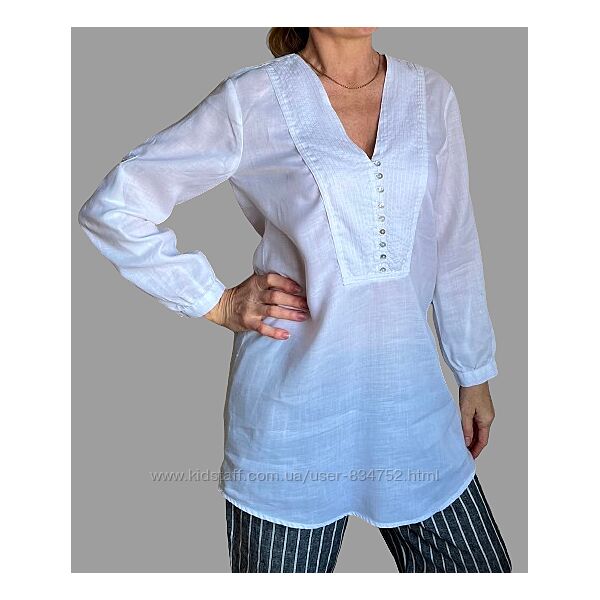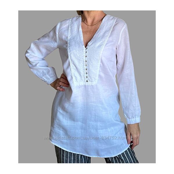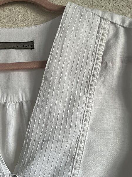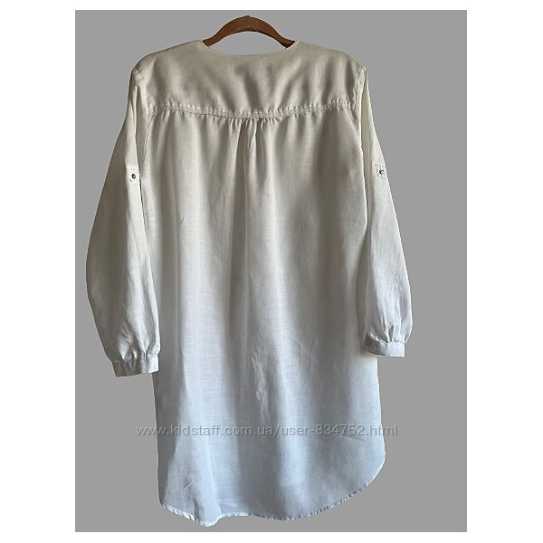 Льняная блуза рубашка zara удлиненная белая р.44, новая