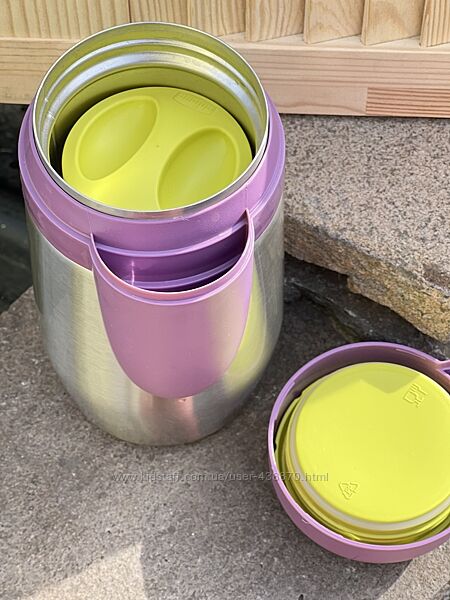 виконаний з нержавіючої сталі;в комплекті 2 контейнери ємністю 250 мл для каші, супу та іншої їжі;на термосі передбачена невелика "кишеня" для столових приладів (столові прибори в комплект не входять).