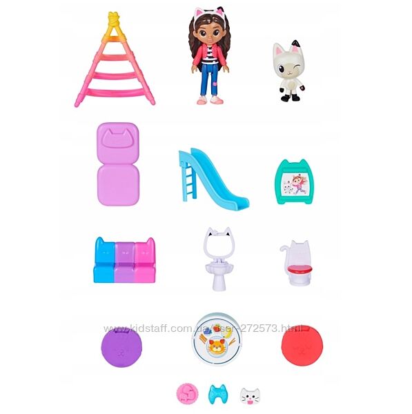 15 аксессуаров для воссоздания: Веселье мгновенно обеспечено с Габби, и пастообразные лапы обнаруживают 2 коробки с сюрпризами, 3 аксессуара и 8 предметов мебели, включая диван, горку, стол, который меняется с завтрака на ужин и многое другое.