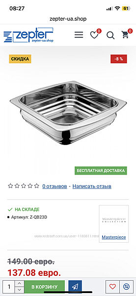 Подходит для запеканок, тушеных продуктов, мяса, птицы, рыбы, овощей… Цептер гарантирует здоровую и вкусную пищу, сохраняет продукты, экономит энергию, время и деньги. А самое главное, Цептер сохраняет Ваше здоровье. Zepter с гордостью объявляет о мировой премьере превосходного Zepter металла 316L, используемого для производства посуды Zepter Masterpiece. Эта посуда позволяет правильным способом готовить здоровую пищу, представляет собой совершенство и функциональность и, прежде всего, защищает Ваше здоровье. В подарок новая комбимиска.Превосходный Zepter металл 316L на 50% дороже стали 18/10 и намного её престижнее.