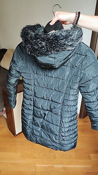 Куртка - пальто Next 10 років, 140 см. Холодна осінь - зима. Тканина верх - 100% поліестер, підкладка штучне хутро, наповнювач синтепон, стан відмінний. Гарно сідає по фігурі.Заміри: довжина по спинці 70см, рукав 54см, ПОГ 41см, ПОТ 40см, плечі - 37см.