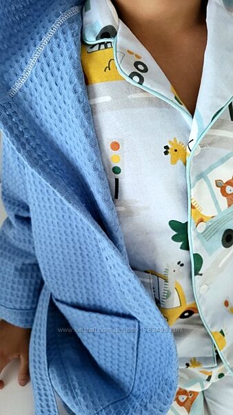 Подробное описание: Вафельний халат дитячий натуральний синій стильний банний халат для хлопчик