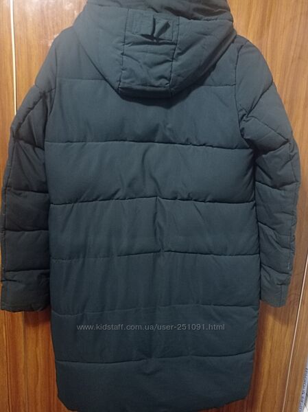 Продам теплую куртку на зиму. Небольшие дефекты указаны на фото. Цвет темно зелёный (бутылочный).Длина 96см, ширина плеч 40см, ПОГ 52см, ПОБ 57см, плечо 10см, рукав 65см