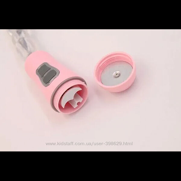 Работает от двух батареек ААА (мини пальчиковые), в комплекте не идут.