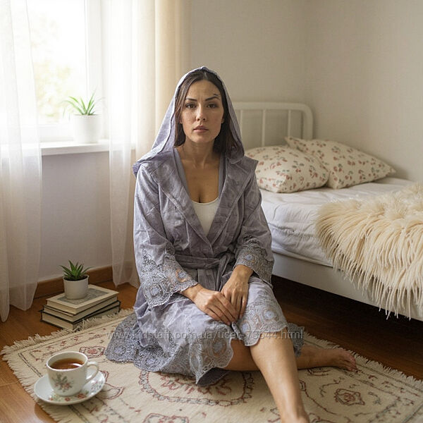 Жіночий халат з мереживом.Тканина халата 50% бавовна та 50% бамбук.