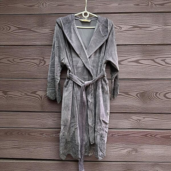 Жіночий халат з мереживом. Велюр. Розмір S, M, L / XL Nusa Туреччина