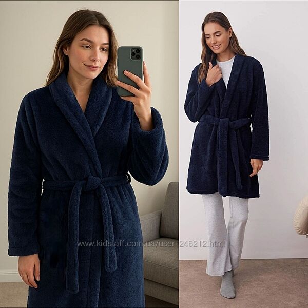 Дуже крутий теплий халат Lefties із Іспанії!Шалевий комір , на запах , під пасок , без кішень.