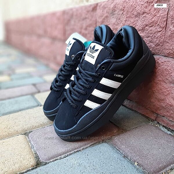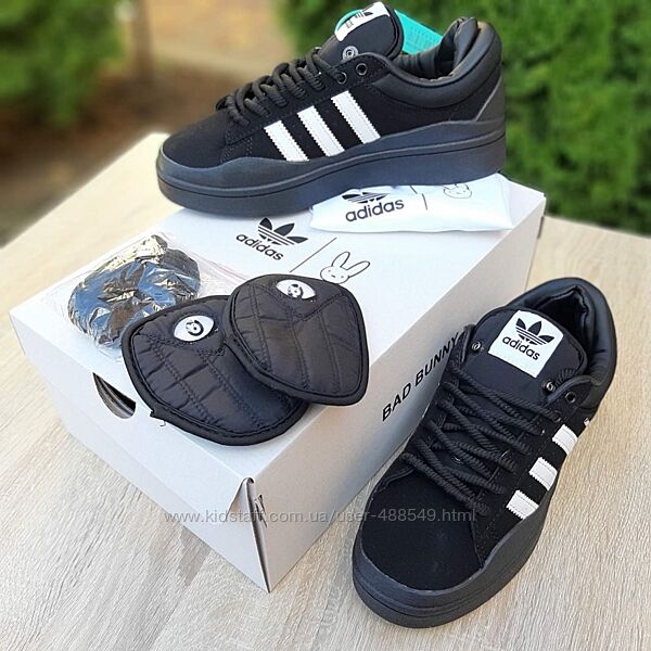 Подробное описание: Кросівки жіночі Adidas CAMPUS x Bad Bunny чорні з білим замша