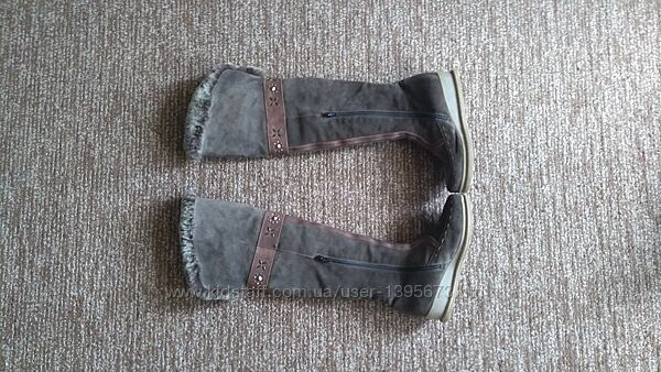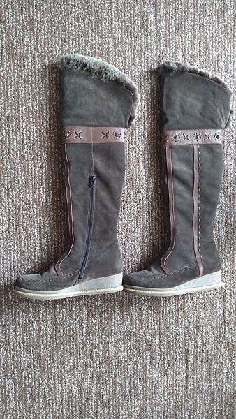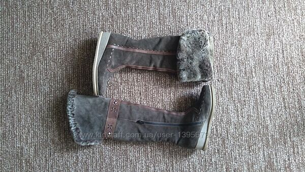 Подробное описание: 37 розмір. Коричневі замшеві зимові чоботи з натуральним хутром