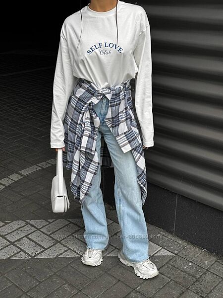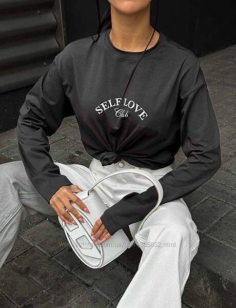 Лонгслів SelfLoveClubНестримно стильний лонг із лозунгом всіх дівчат! Безліч варіантів стилізації з денімом, брюками і сорочками.