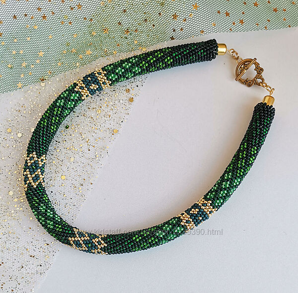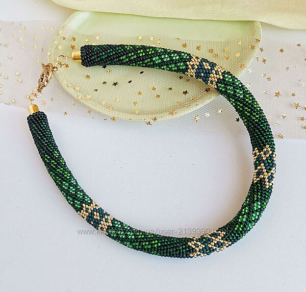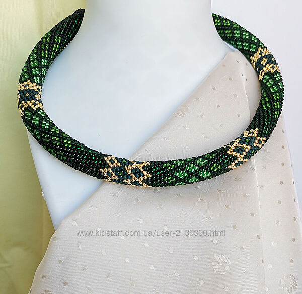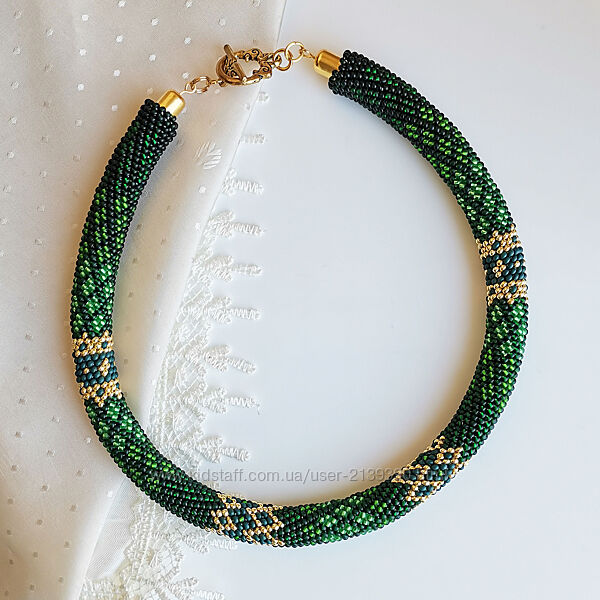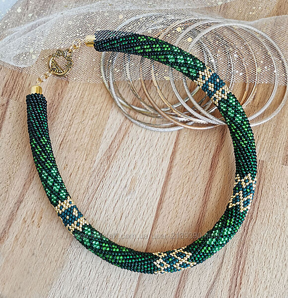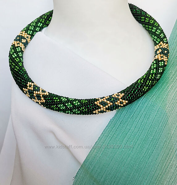 Прикраса із бісеру джгут-кольє Смарагдові чари