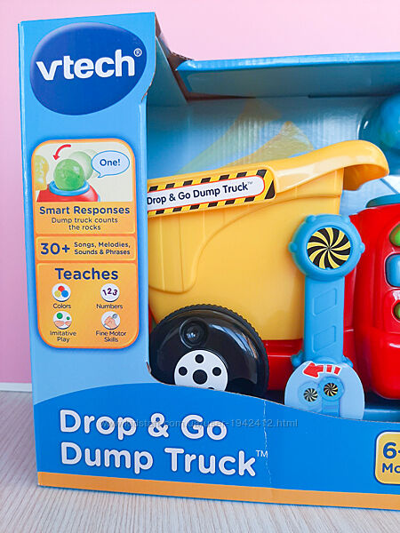 Дитина зможе в ігровій формі вивчити цифри і кольори. Розвинути дрібну моторику допоможуть пластмасові кульки, які потрібно опускати в отвір кабіни вантажівки. З кабіни кульки потрапляють прямо в кузов і можуть вивантажуватися при натисканні на спеціальний важіль. Ігровий процес супроводжується веселими звуками і мелодіями, що звичайно ж сподобається Вашому малюку. Також дитина зможе тягати за собою машинку на мотузочці. Навчальна машинка VTech відтворює прості фрази і веселі пісеньки англійською мовою. Регулятор гучності дозволить підібрати комфортний звуковий режим гри. Для роботи необхідні 2 батарейки ААА, які входять в комплект.