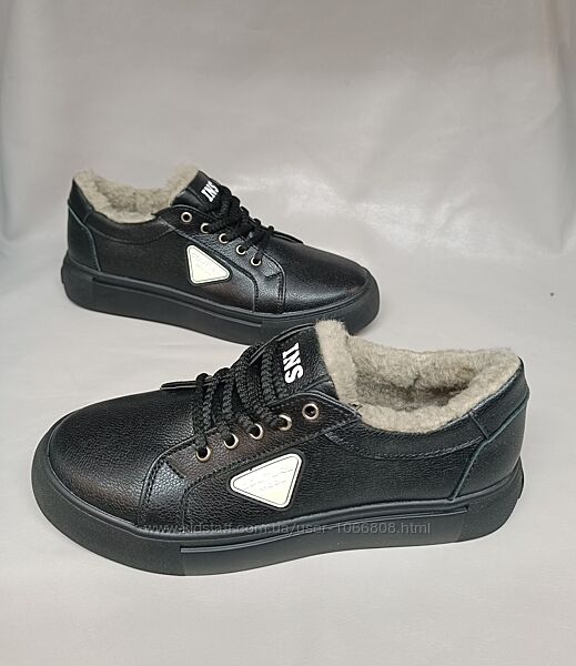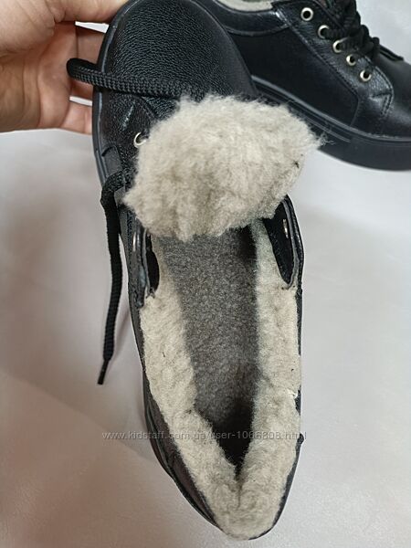 Зимние кеды из натуральной кожи.Мех из натуральной шерсти